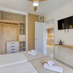 Disfruta de la comodidad del baño del Colinamar Luxury Apartment Near Airport And Beach, equipado con secador de pelo y toallas. Además, encontrarás inodoro separado y ducha.